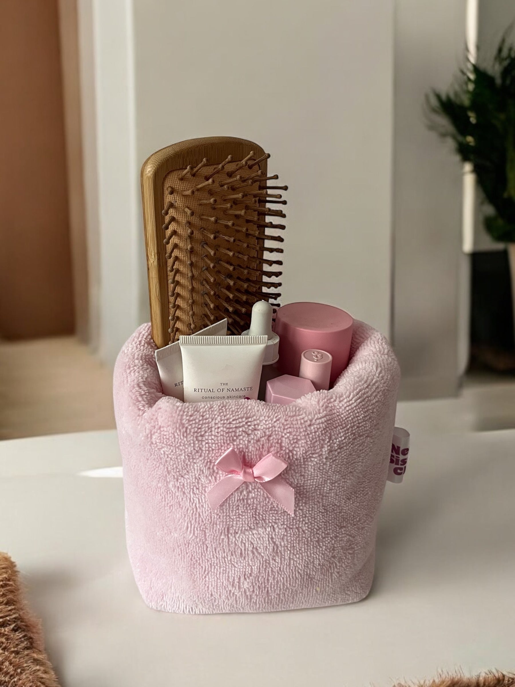 Pink sponge storage basket